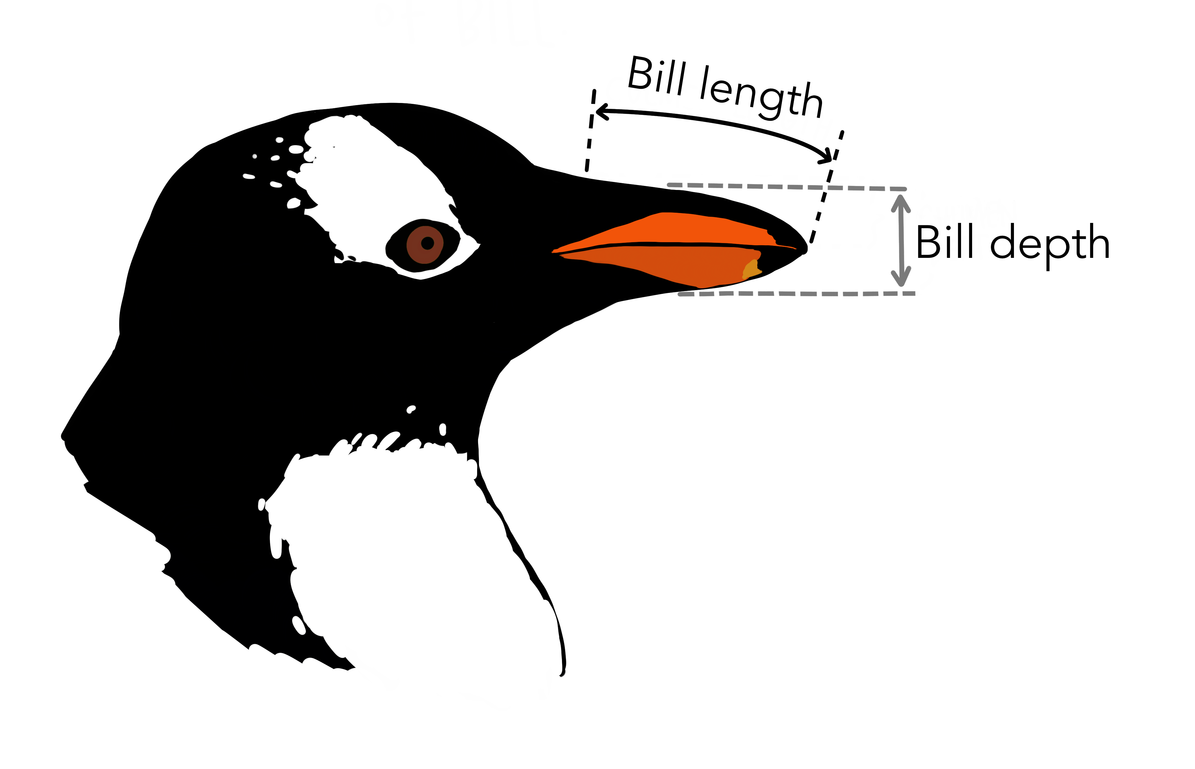For R2, we would report this as: Variation in bill length predicts 41% of the variation in bill depth (R2 = 0.41).